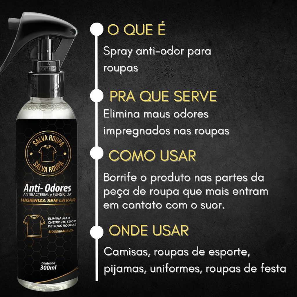 Spray Salva Roupa® Anti-Odor Pós-Lavagem - Roupas sempre Frescas e cheirosas - 900ML (3 Unidades - 300ML cada)
